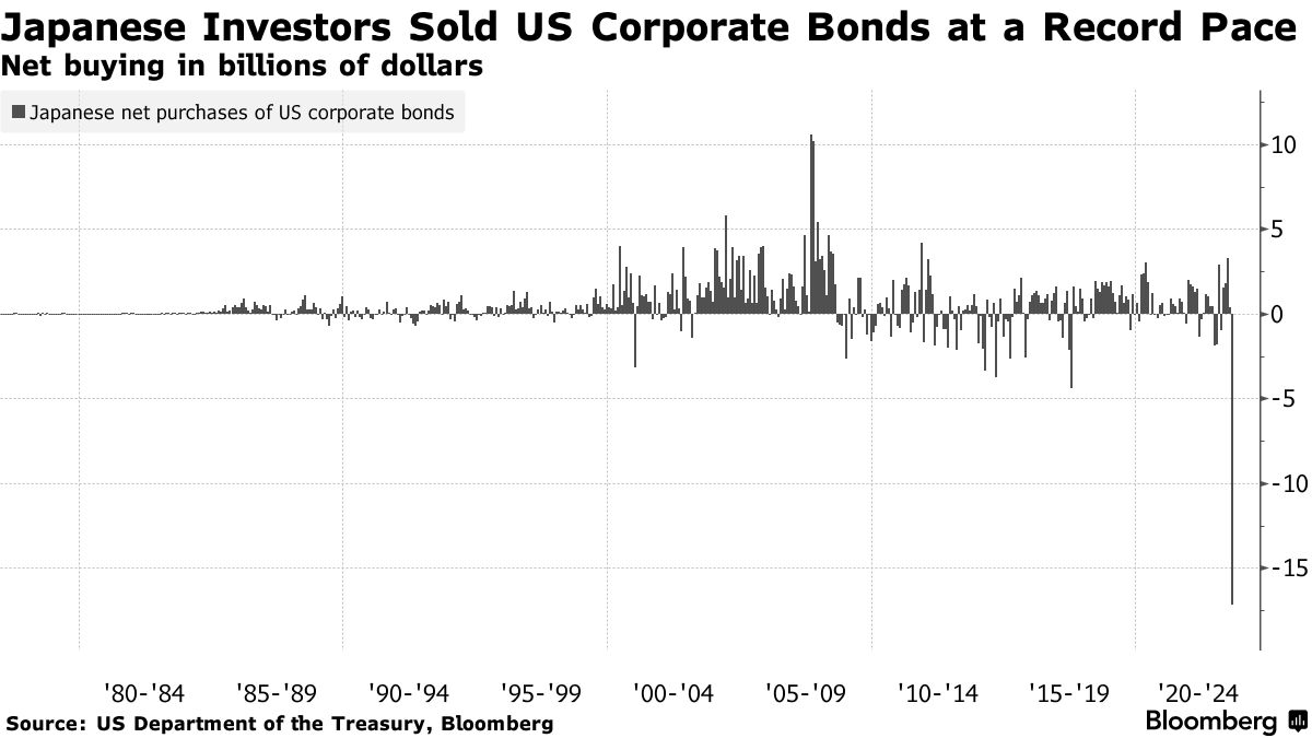 根据最新的财政部数据,日本投资者在8月份净卖出了创纪录的172亿美元的美国公司债券,因为20多年来最高的套期保值成本使这些证券变得不太具吸引力。