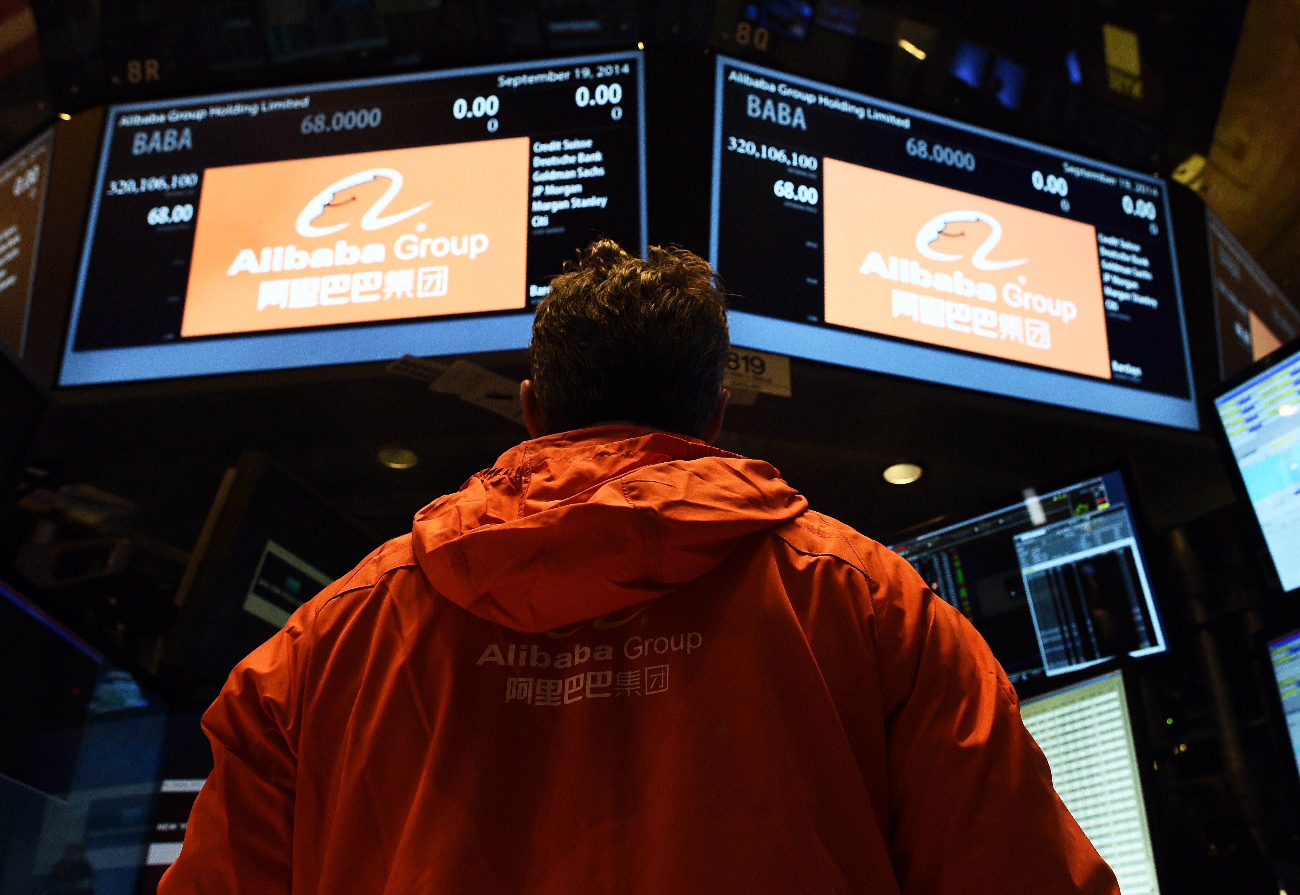 一名交易员在2014年在纽约证券交易所等待阿里巴巴股票上市。