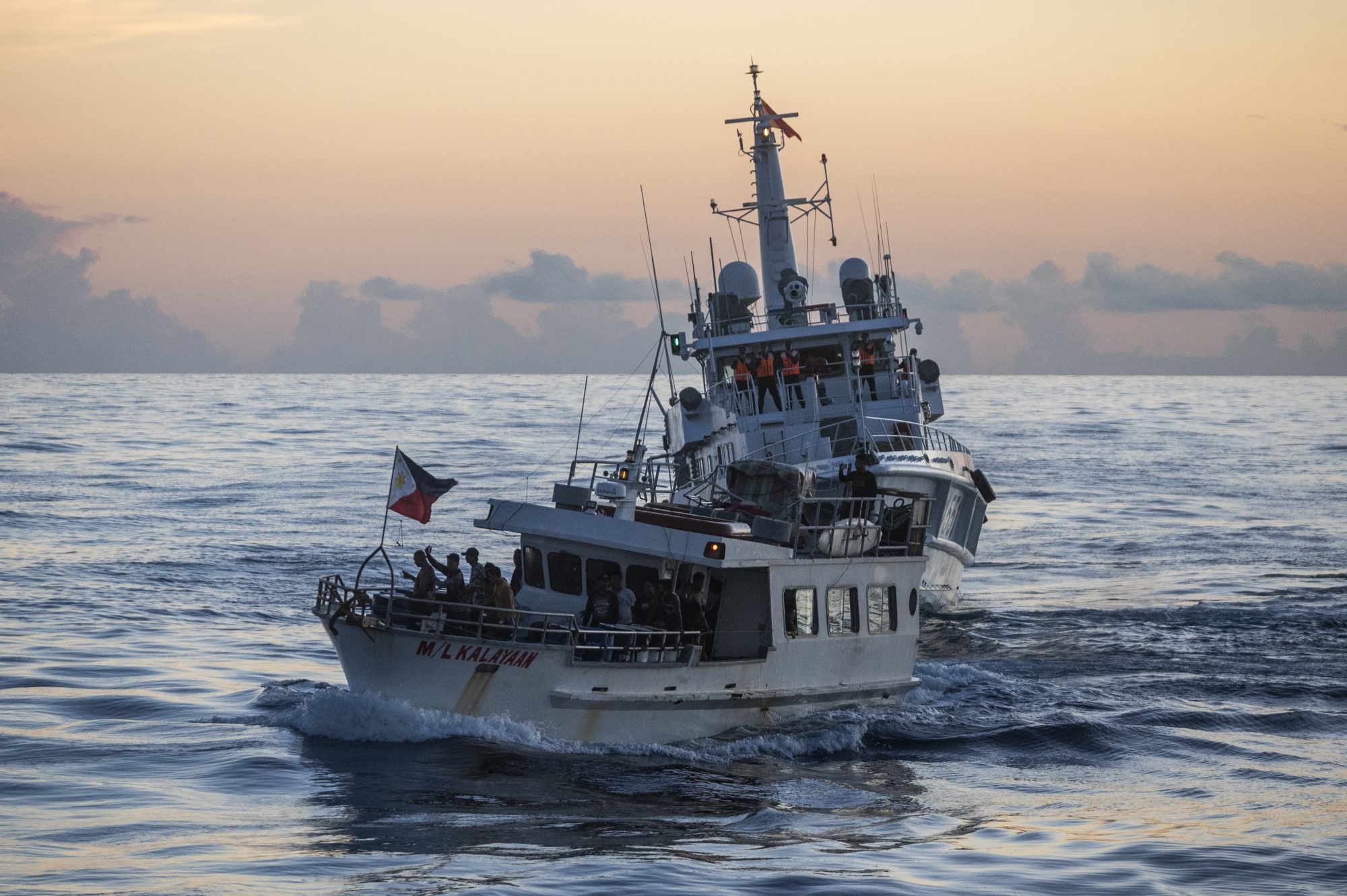 这次任务始于周四上午9点左右,两艘菲律宾海岸警卫船搭载记者开始护送补给船前往第二托马斯滩的全天航程。