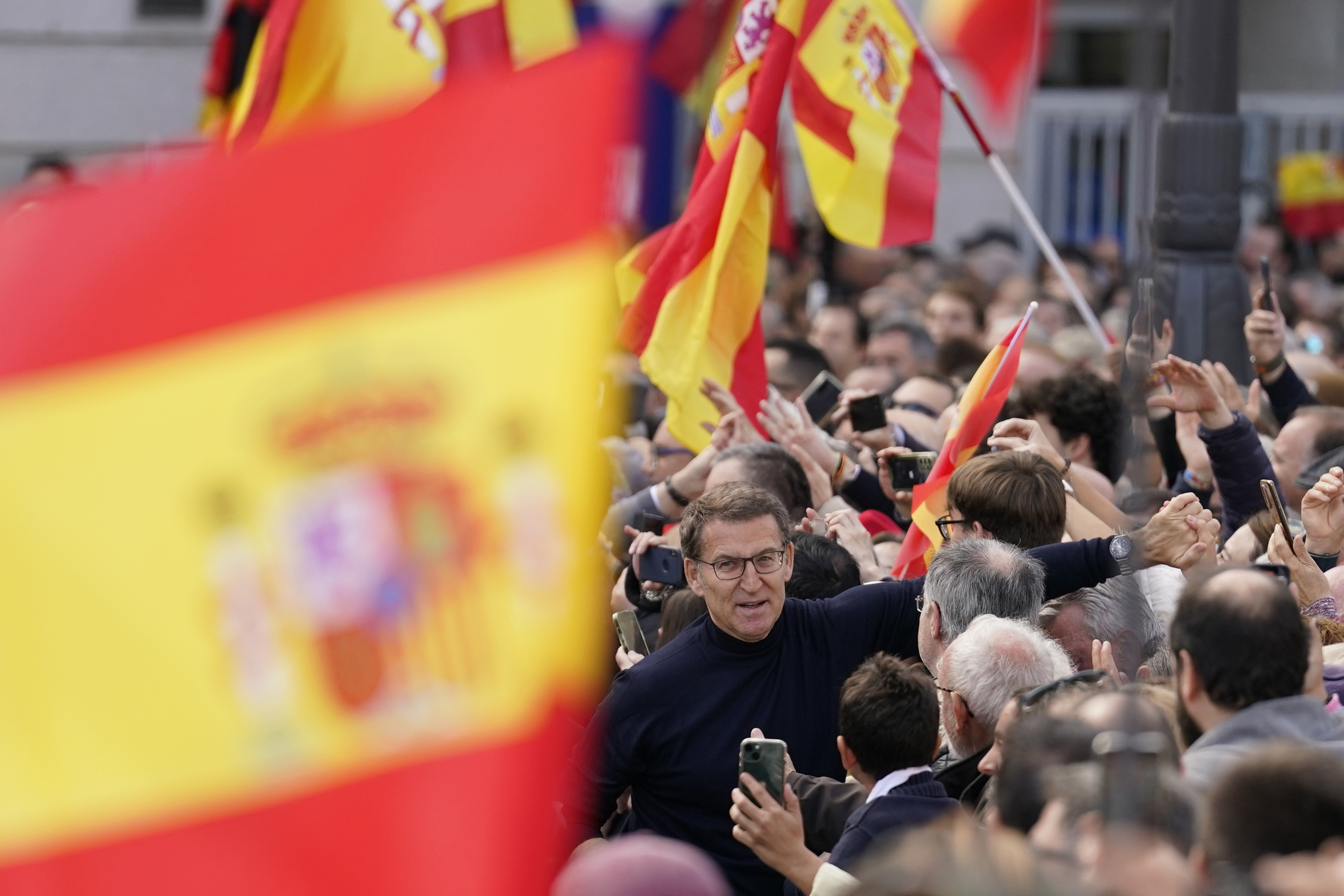 “这远远超出了谁投票给谁的范围,”人民党领袖阿尔贝托·努涅斯·费霍在马德里的示威活动中说道。“这超越了政党之间的分歧。”