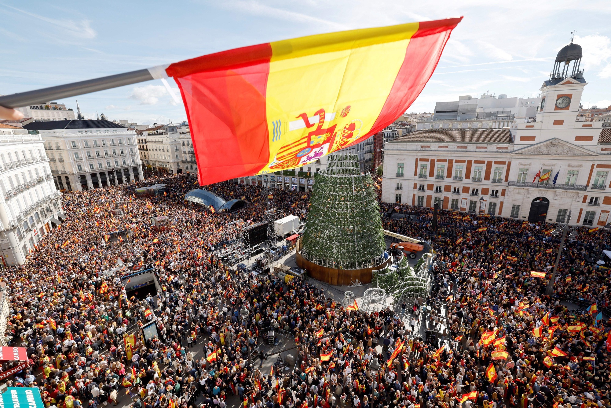 这次示威活动由保守派反对党人民党发起,旨在加大对桑切斯已经面临的巨大压力。在与一个加泰罗尼亚分裂主义党派达成协议,换取赦免后,他将在本月的议会投票中寻求新任期。