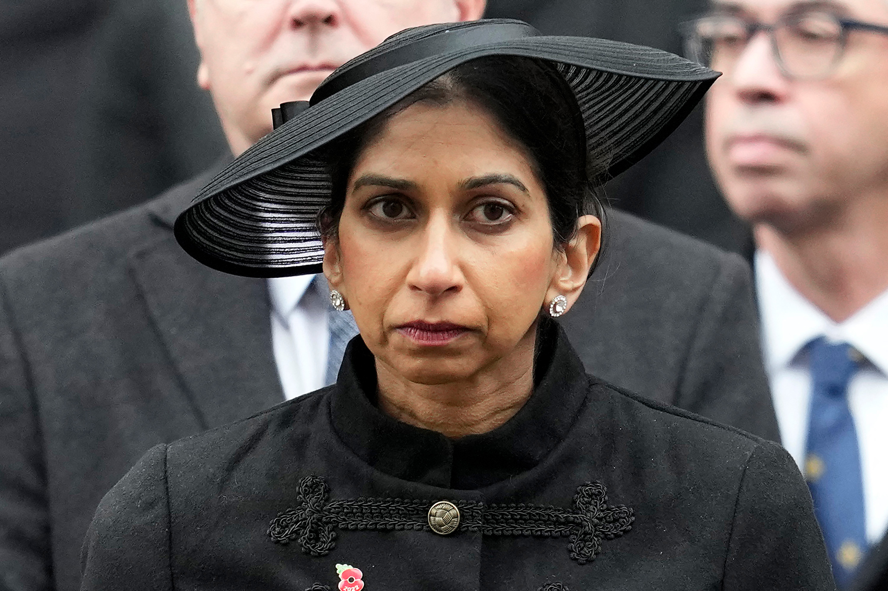 苏埃拉·布拉弗曼在伦敦的国家悼念仪式上,于11月12日。摄影师:Kin Cheung/AFP/Getty Images**重要裁决:**英国的旗舰移民政策将在国家最高法院决定其是否合法时面临最严峻的考验。五名最高法院法官将于周三就政府计划将寻求庇护者驱逐到东非内陆国卢旺达进行处理的裁决。正如乔纳森·布朗宁所解释的那样,这一裁决将要么鼓舞苏纳克的努力,要么给政府带来另一次尴尬。