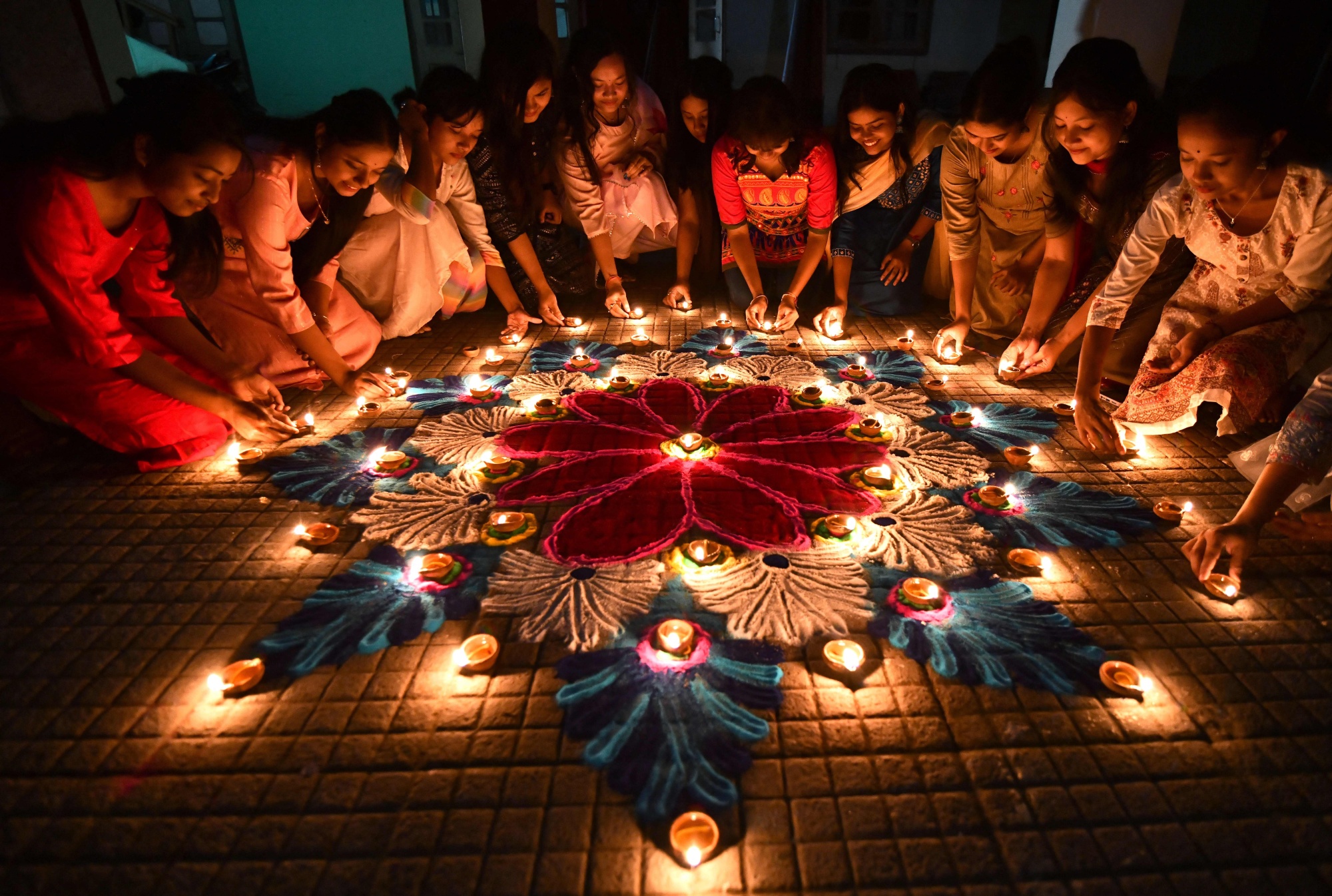 在全国各地,绚丽多彩的灯光装饰着家园和街道,信徒们庆祝象征光明战胜黑暗的年度印度教节日。