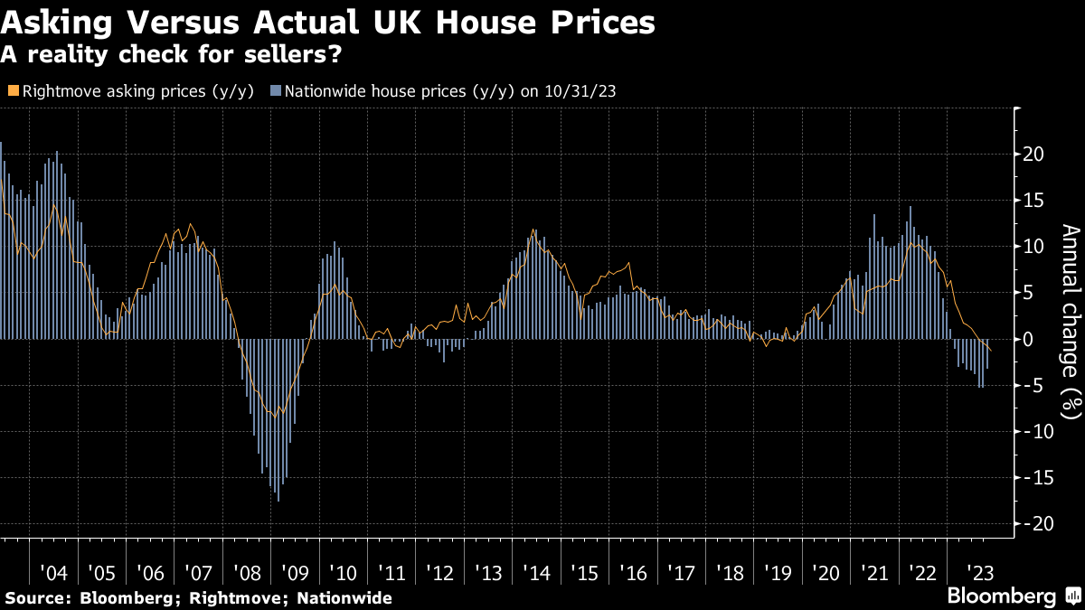 英国房价正在缓慢但稳定地下降,Rightmove房产数据显示-彭博社