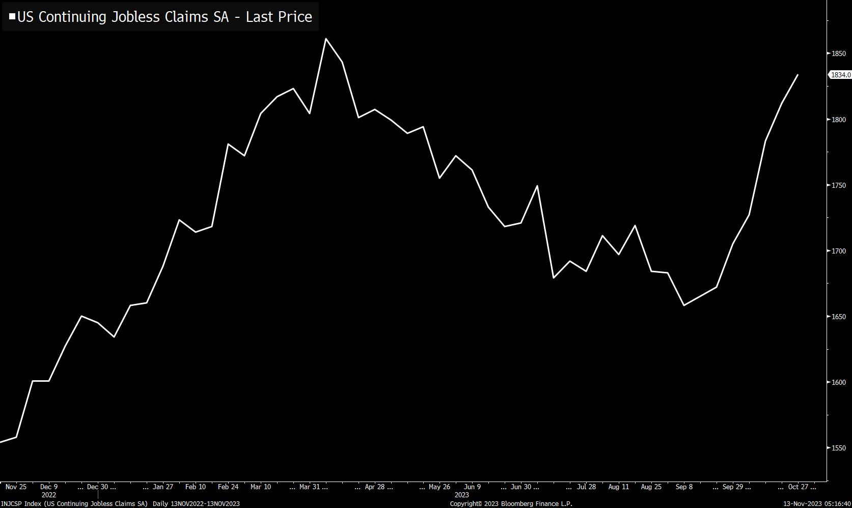 自去年夏末以来,持续救济申请一直在逐渐增加,接近年度最高水平。