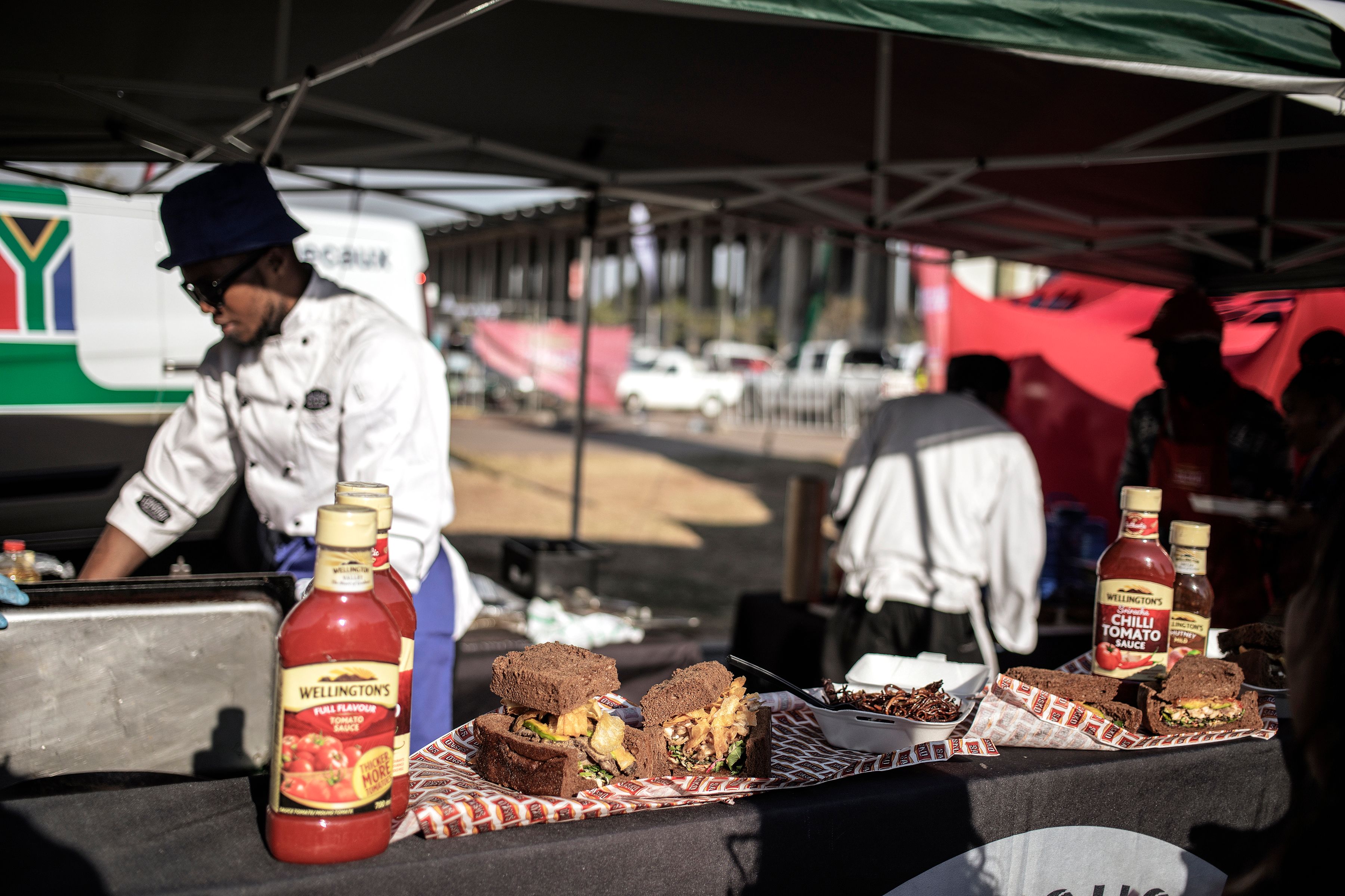 一位街头小贩在南非索韦托的克利普敦准备“科塔”三明治,这是科塔节期间的一幕。摄影师:Gianluigi Guercia/AFP/Getty Images在约翰内斯堡繁华的学生聚集地布拉姆丰丁,土豆价格的上涨正在破坏其共享饮食文化,人们为了省钱而独自小吃。