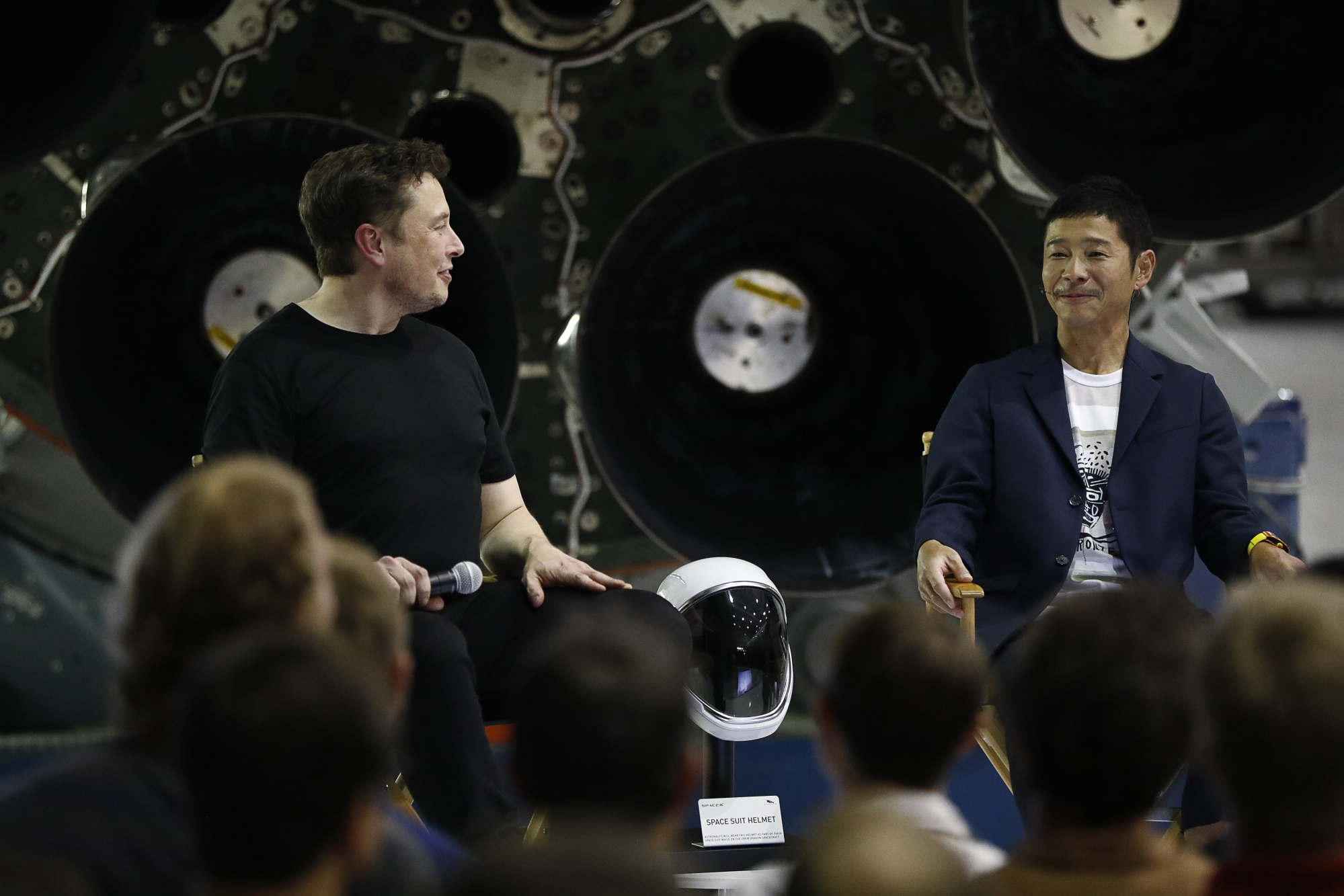 2018年,日本亿万富翁前往SpaceX总部与埃隆·马斯克合影,地点位于加利福尼亚州霍桑。摄影师:Patrick T. Fallon/Bloomberg在埃隆·马斯克准备自四月失败的发射后首次测试其星舰火箭时,这位日本亿万富翁被选中领导首次载人飞行的任务,他正在考虑其他太空公司。