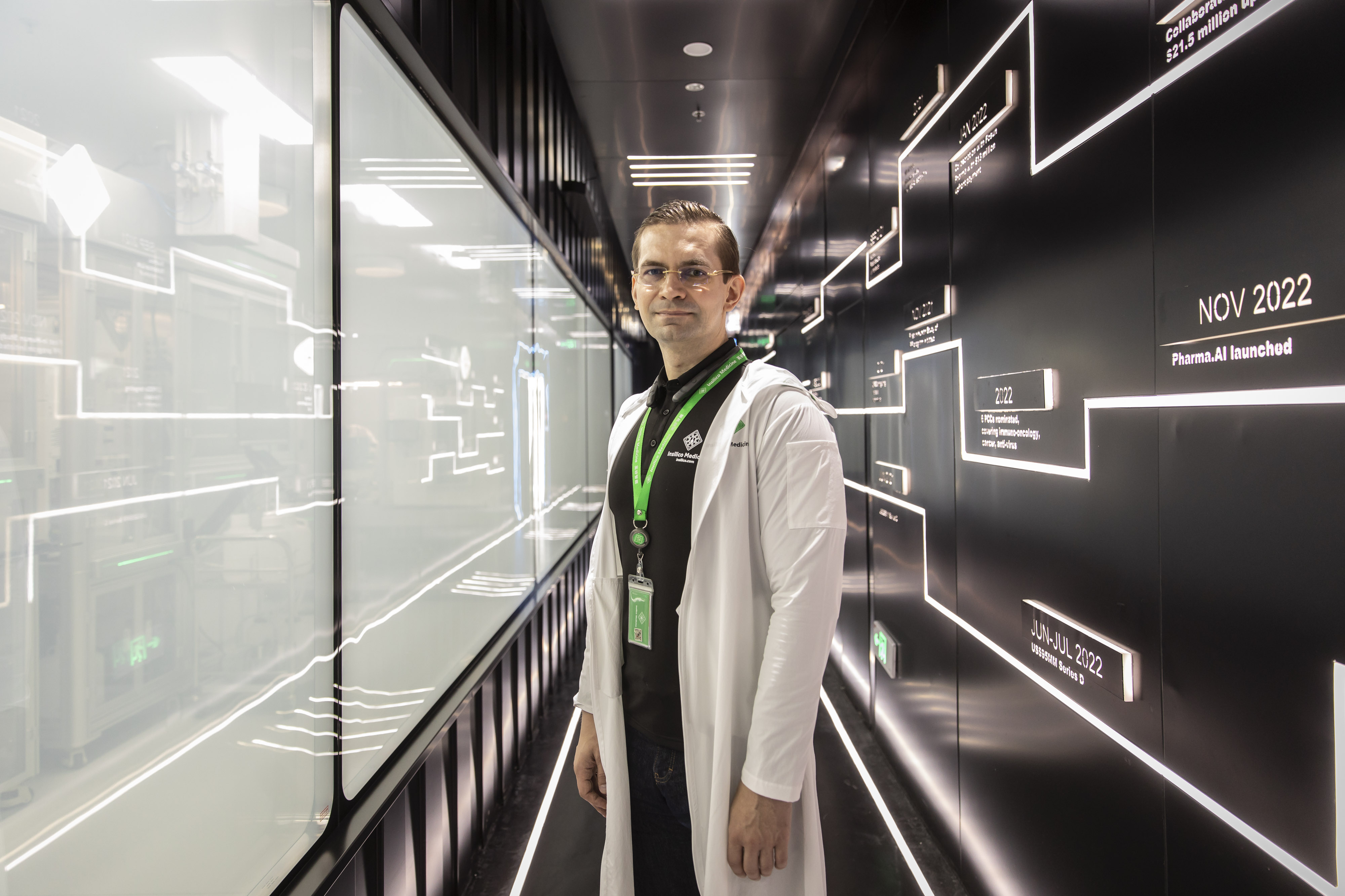 Alex Zhavoronkov,Insilico Medicine的创始人兼首席执行官,在该公司位于中国苏州的人工智能运行的机器人实验室。摄影师:Qilai Shen/Bloomberg利用人工智能寻找新药物的全球推动面临着一个关键考验,因为一家领先者开始接近由算法发现的药物的后期试验。