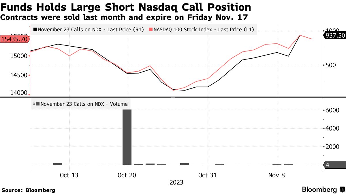 来源:彭博社彭博社对该ETF的持仓数据目前显示,纳斯达克100的14,600份认购期权到期于11月17日,持有5280份空头合约,没有期货合约。