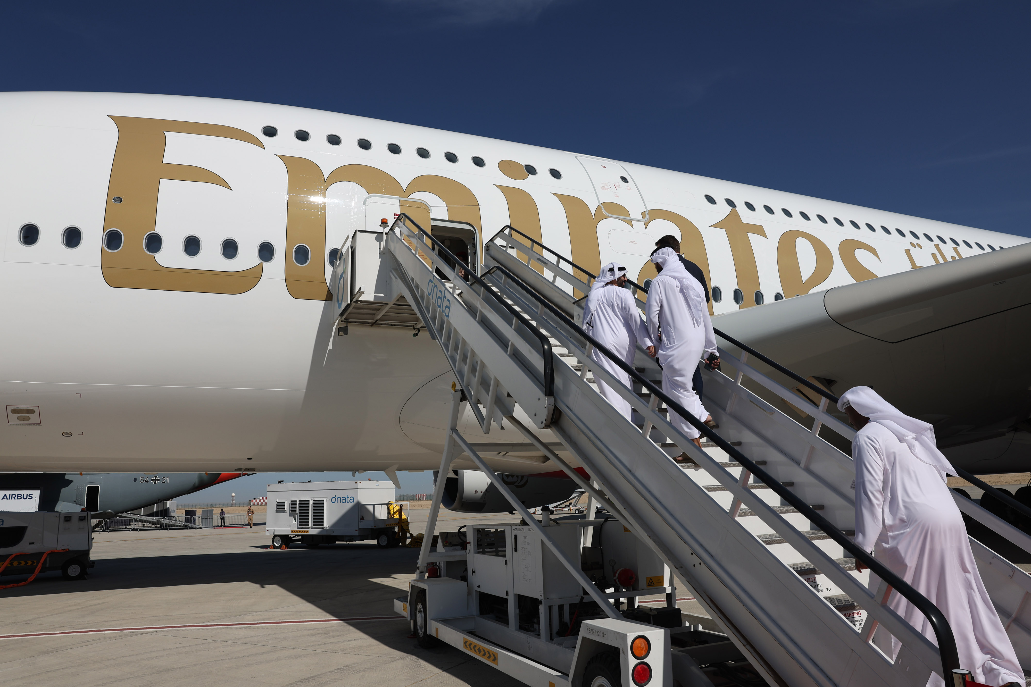 一架阿联酋航空运营的空中客车A380-800客机在迪拜航展上展出,日期为11月13日。摄影师:克里斯托弗·派克/彭博社### 发动机制造商重置(下午5:30)