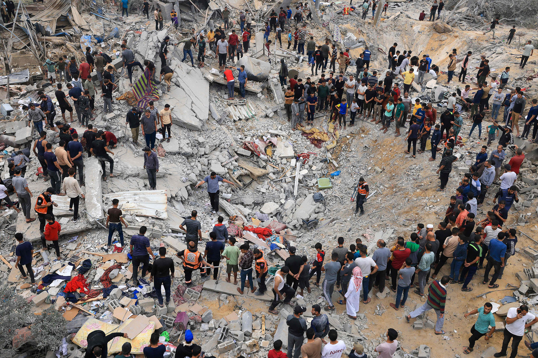 救援人员在加沙的汗尤尼斯寻找幸存者。摄影师:Mahmud Hams/AFP/Getty Images美国众议院新共和党议长指望民主党批准他的提案避免本周末政府关门。迈克·约翰逊计划今天进行投票,需要三分之二多数通过,他的党派没有这个多数。民主党不喜欢这项措施,因为它没有包括以色列和乌克兰的紧急资金,并威胁明年分两步关闭政府。