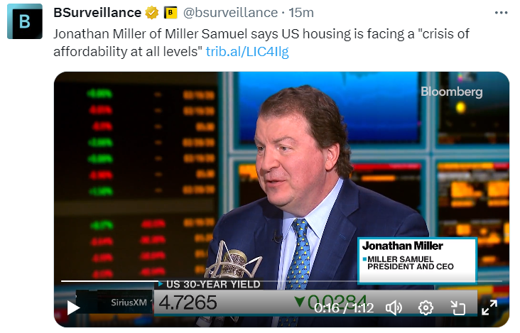 米勒·塞缪尔的乔纳森·米勒对房地产市场提出了这种不快乐的观点,因为多年来最高的抵押贷款利率使得现有住房市场陷入了深度冰冻。房主们选择留在原地,加剧了价格压力,除此之外还有更昂贵的借贷。