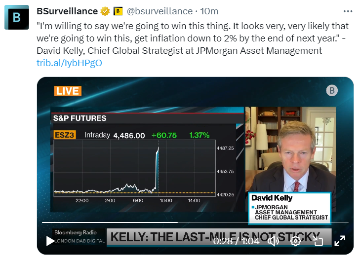 股市飙升和债券收益率暴跌所表达的喜悦被摩根大通资产管理公司的大卫·凯利所凝结,他在监控上宣布,“我们将赢得这场比赛。”
