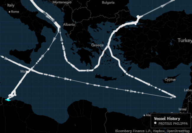 根据彭博编制的油轮追踪数据,Proteus Philippa号两天前抵达利比亚西部的Mellitah附近。这艘船原本准备装载60万桶石油,但因为此前曾将石油运往以色列的海法而被要求离开。
