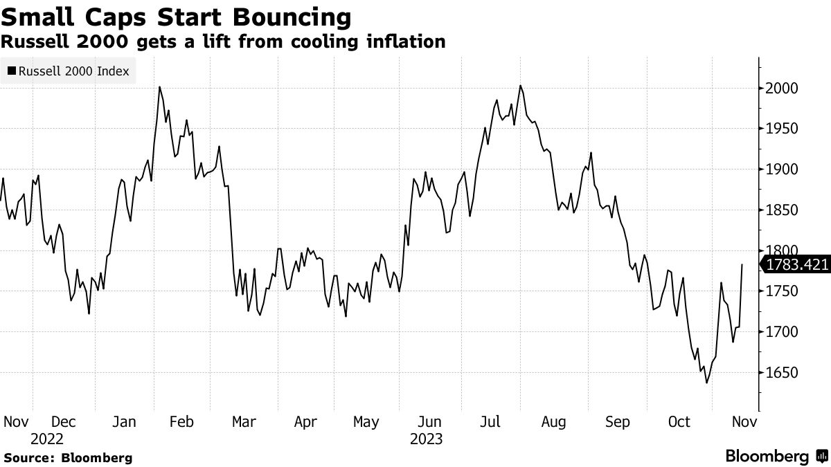 罗素2000指数自2022年11月以来表现最佳,因通胀降温 - 彭博报道