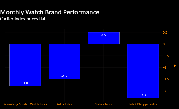 彭博Subdial手表指数在十月份下跌了1.8%,跌至自2021年以来的最低水平。该指数跟踪二级市场上价值最高的50款交易手表的价格,目前比2022年4月的高点下跌了42%。