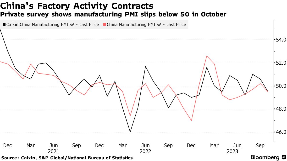 中国的工厂最近出现了问题迹象,制造业活动在官方和私人调查中意外收缩。出口也下降超出预期,这表明中国商品的全球需求难以获得动力。