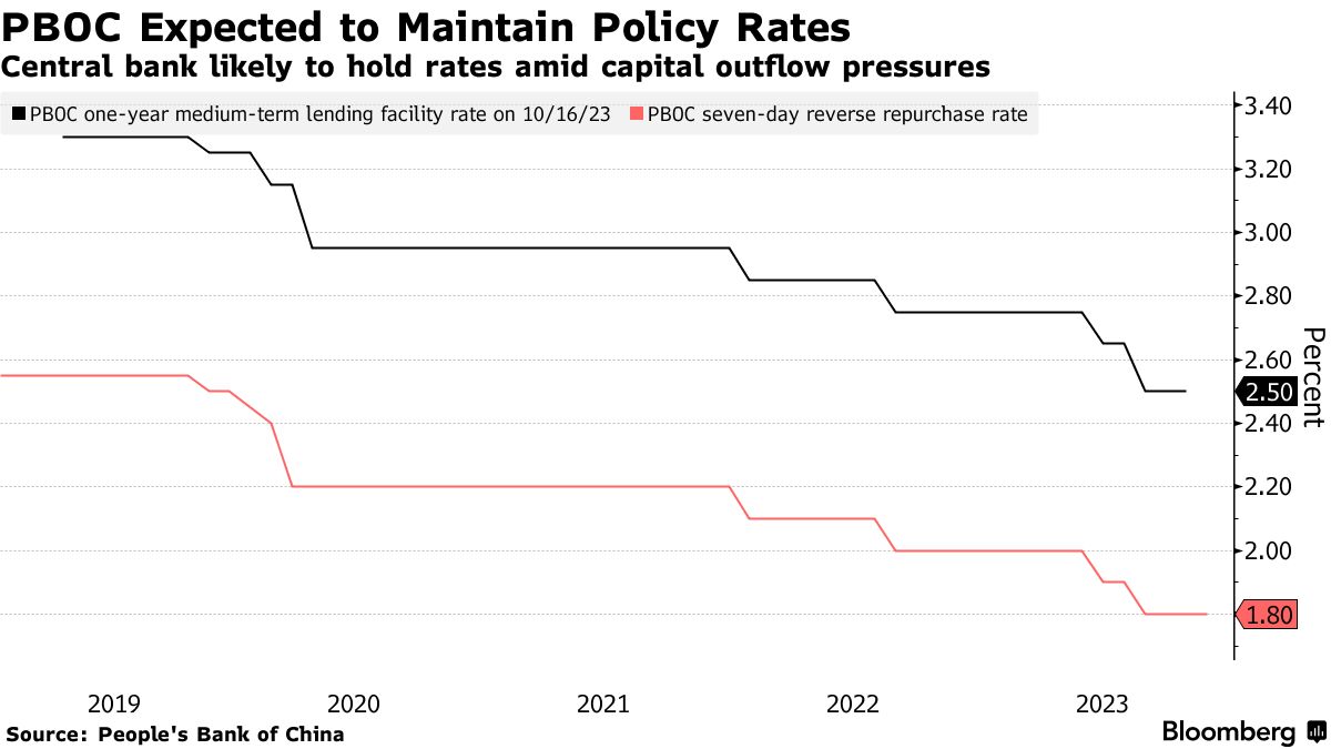 人民银行预计将于周三将中期借贷便利利率维持在2.5%,根据彭博社调查的15位经济学家中的12位。其余人认为央行将把利率降低五到十个基点。