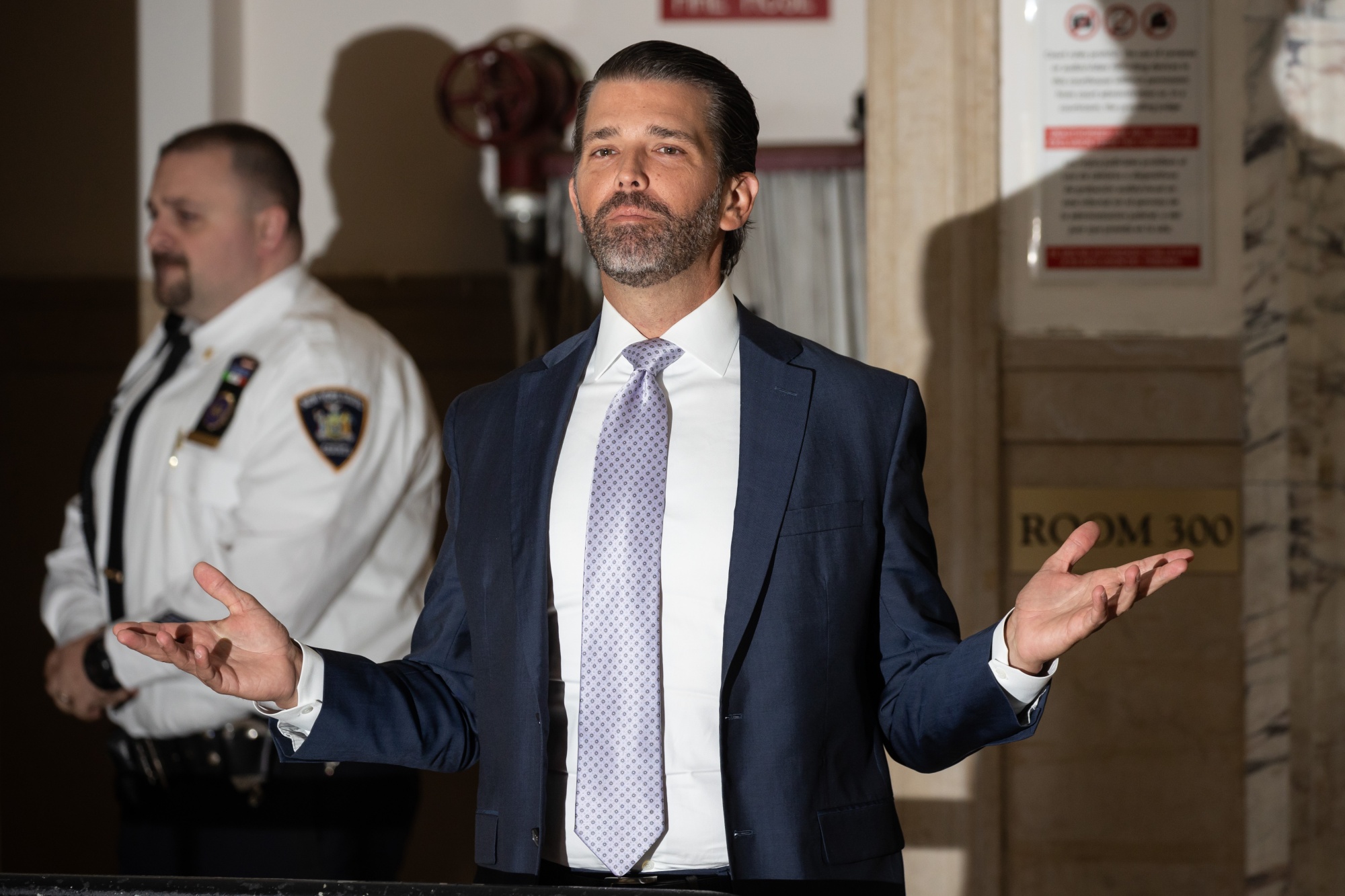 唐纳德·特朗普(Donald Trump Jr.)与其父亲和弟弟埃里克·特朗普一起被起诉,周一在曼哈顿作证约四个小时,生动描述了关键的特朗普集团(Trump Organization)资产。与首次在法庭作证时被作为证人传唤时形成鲜明对比,他显得轻松,并经常与法官开玩笑。