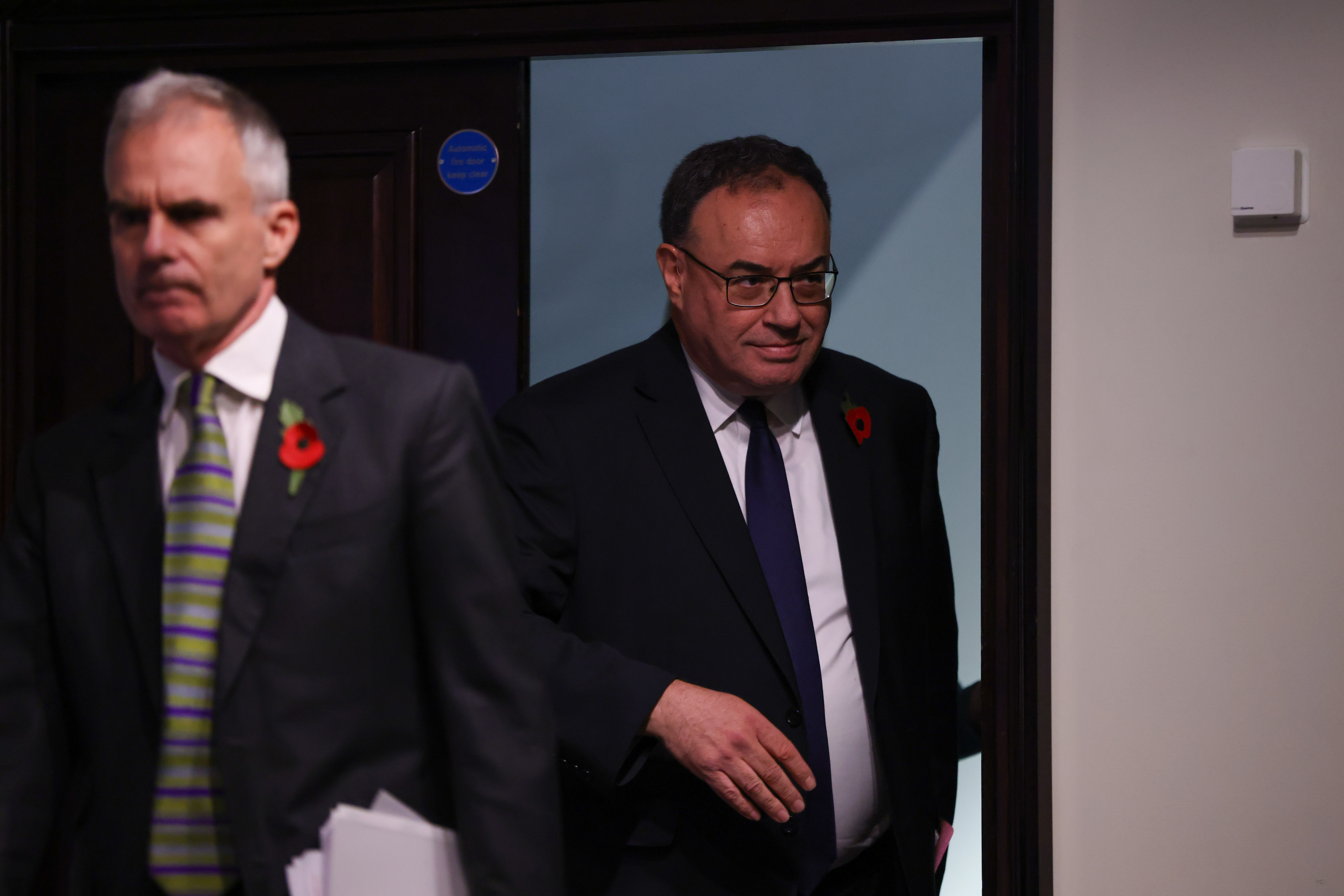 英格兰银行副行长本·布罗德本特(左)与行长安德鲁·贝利,摄于11月2日。摄影师:Hollie Adams/Bloomberg一位BlackRock Inc.高管将协助选择英格兰银行第二号权力最大的官员,这一安排使全球最大的资产管理公司有机会帮助塑造央行未来的政策方向。