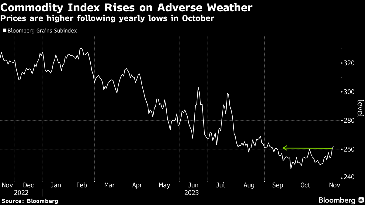 农产品商品,尤其是玉米和大豆,被用于从燃料到食品的各种用途,价格正在上涨--但这种涨势可能是短暂的。由于担心南美洲的恶劣天气,彭博谷物现货子指数昨天达到了自9月14日以来的最高水平。