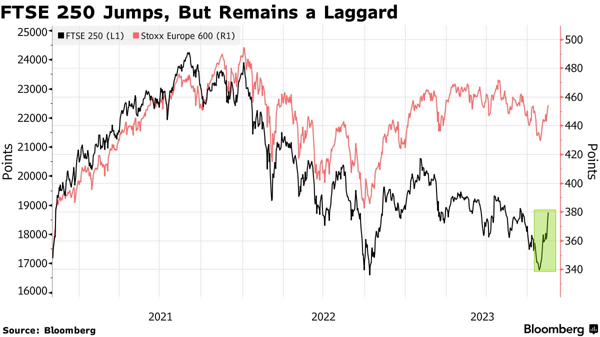英国中型股股票在疫苗突破以来获得最大涨幅 - 彭博社
