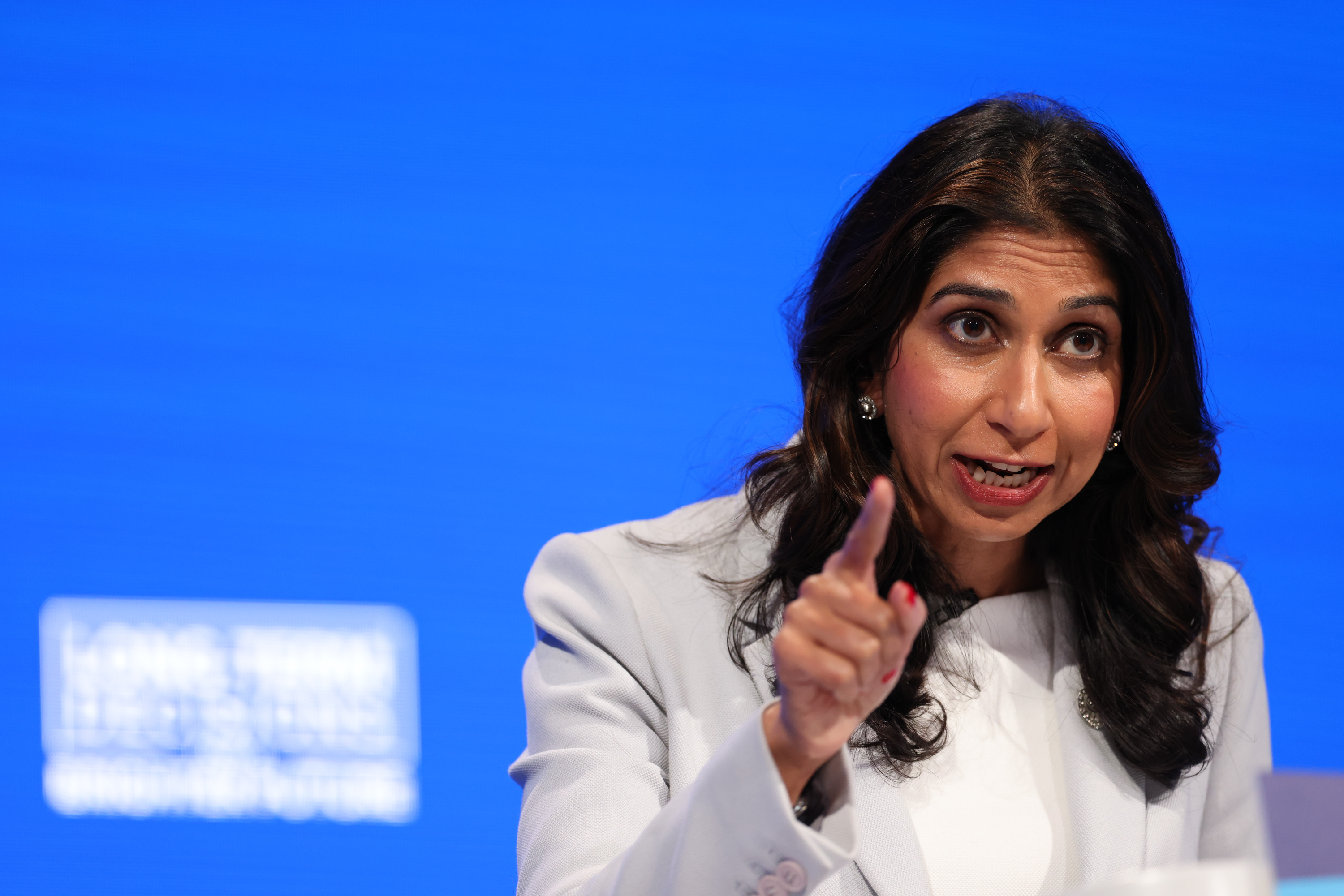 摄影师:霍利·亚当斯/彭博社前英国内政大臣苏埃拉·布拉弗曼指责里希·苏纳克背叛公众,违背了他打击移民的承诺,在一封爆炸性的信函中,这封信可能会加剧执政保守党右翼的紧张气氛。