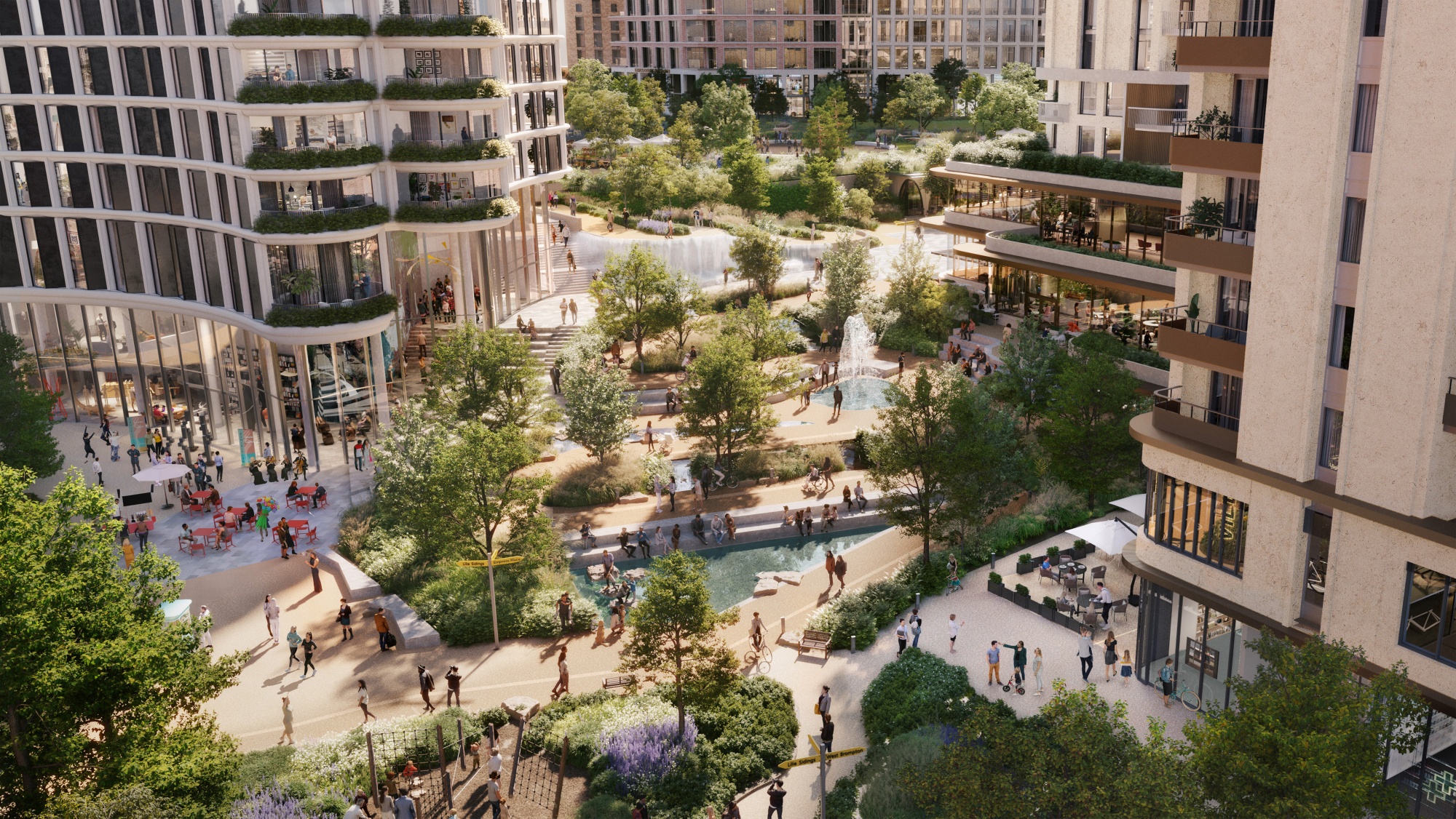Earls Court的The Cascades的CGI图像。来源:伦敦传播机构接管后,Delancey和APG将West Kensington和Gibbs Green住房楼盘交还给了哈默史密斯富勒姆委员会。Earls Court开发公司现在计划在明年年中提交修订后的申请,首阶段工作包括1000多套住房、文化和商业建筑,计划于2026年开始。