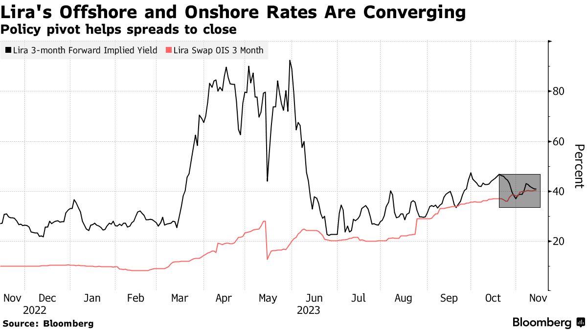 土耳其国内外里拉利率的趋同可能为解除一直困扰外国投资者的货币限制铺平道路。