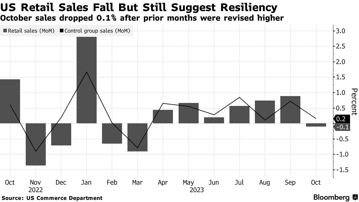 美国零售销售在经历了一个强劲的夏季后,在十月基本保持稳定,这表明在假日季节来临之际有一定的韧性。