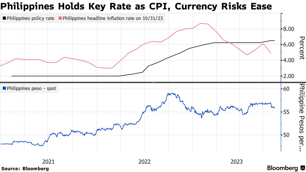 一项独立的Bloomberg民意调查显示,大多数分析师认为菲律宾央行将保持借贷成本在6.5% —— 这是16年来最高水平 —— 直到2024年中期,因为他们预计通胀将在明年回到央行的目标范围内。