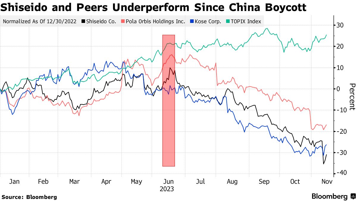 资生堂,自中国抵制以来日本美容股表现不佳 - 彭博社