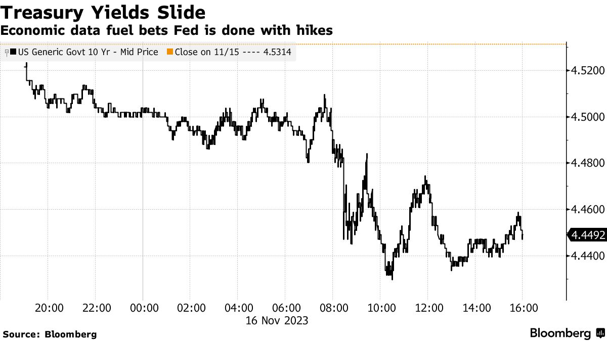 国债上涨,最新的经济数据强调了逐渐放缓的趋势,加强了市场猜测美联储将结束数十年来最激进的加息行动。