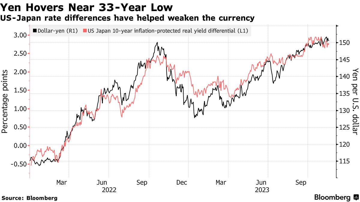 日本银行一直坚持世界上最后一个负利率政策,而美联储被认为正在走向“更高更长”的利率路径。