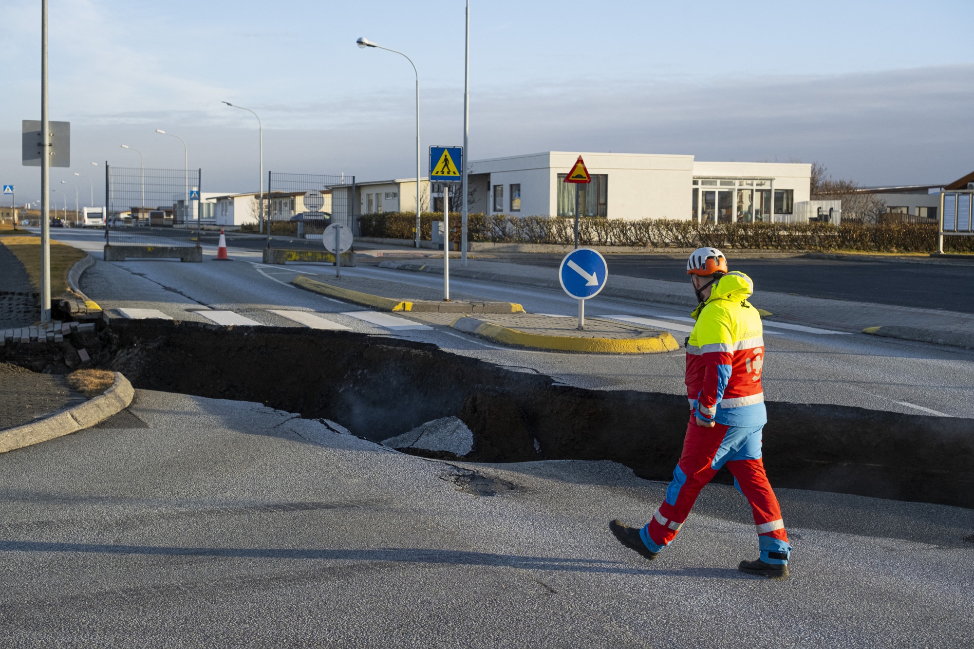 一道裂缝横跨冰岛Grindavik的主要道路。