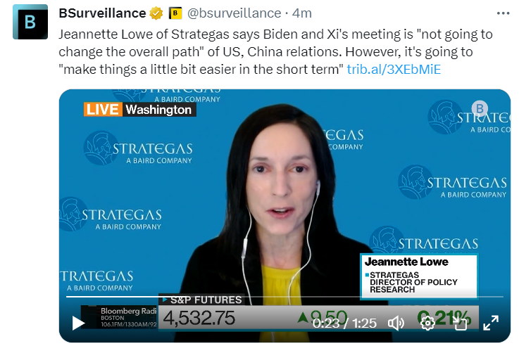 “我认为未来可能不会有太多进展,”Strategas的琼妮特·洛说,她指出拜登在2024年大选即将到来之际几乎没有太多的操作空间。她指出了美国强硬立场的一个低调信号:在拜登和习近平在旧金山的时候,国防部长劳埃德·奥斯汀“正在菲律宾寻求更紧密的军事关系”。