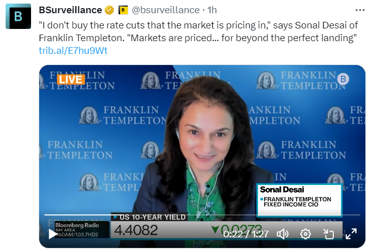在当前水平,收益率已经定价了不现实的美联储降息,她表示,这意味着退出当前通胀周期的理论比完美着陆还要好。她对这种缓解的理论是华尔街上经常看到的行为:FOMO。