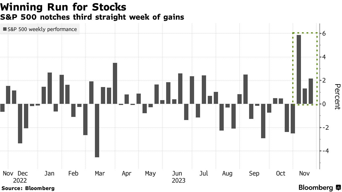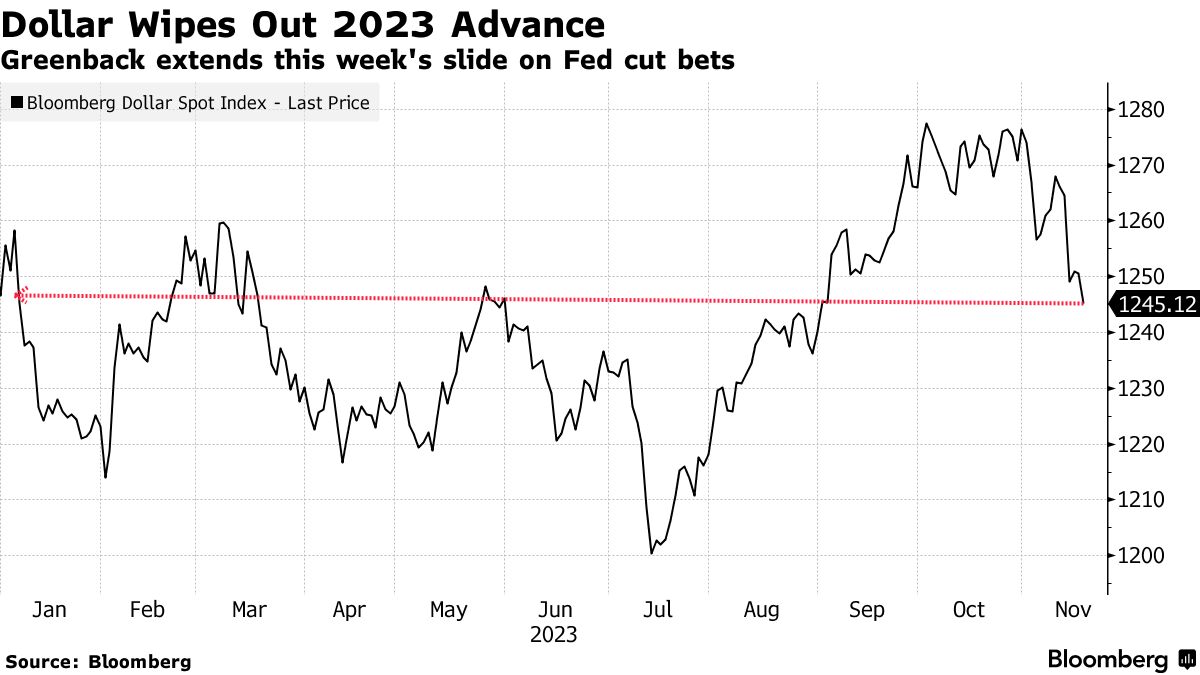 美国股市在11月份以2.7万亿美元的涨幅之后出现小幅波动,这一涨幅是由于市场押注美联储将结束加息周期以避免经济衰退。美元抹去了2023年的涨幅。