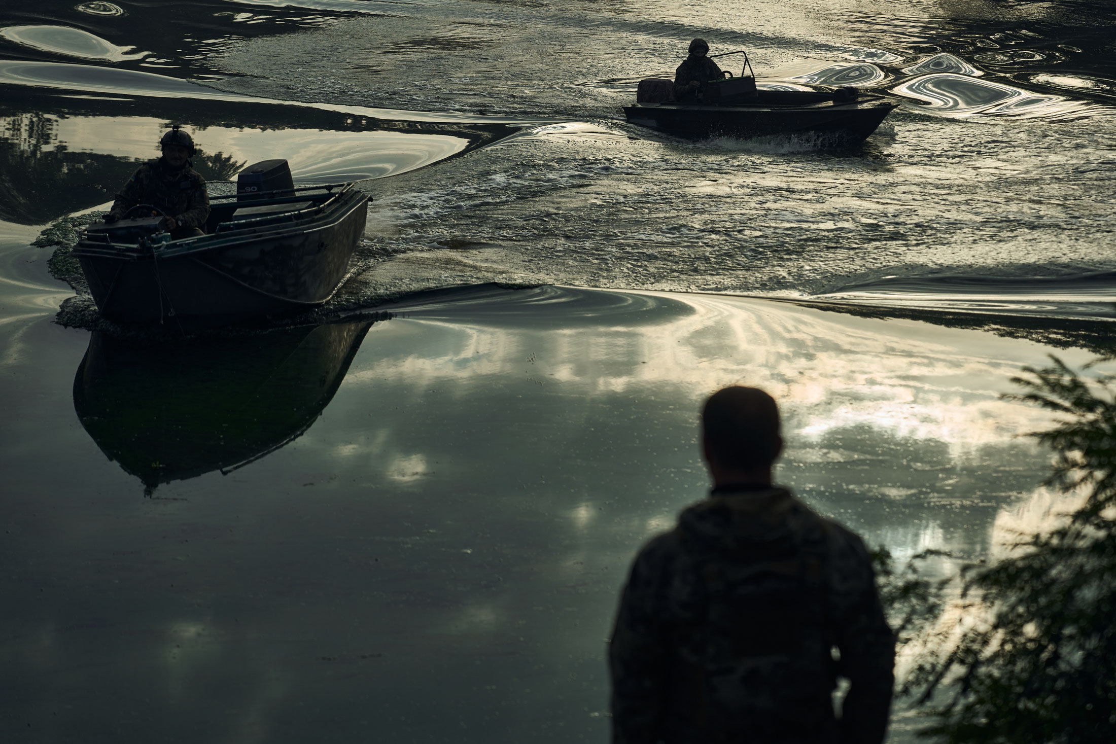 乌克兰军队在乌克兰南部的第聂伯河上。