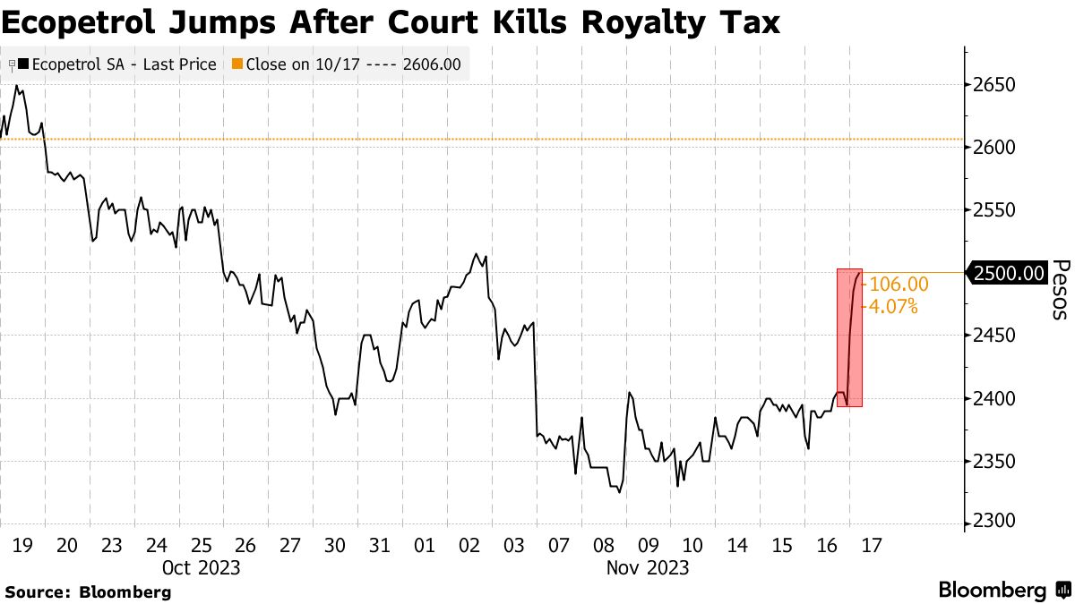 哥伦比亚国家石油公司Ecopetrol的股票在法院撤销税收后大幅上涨 - 彭博社