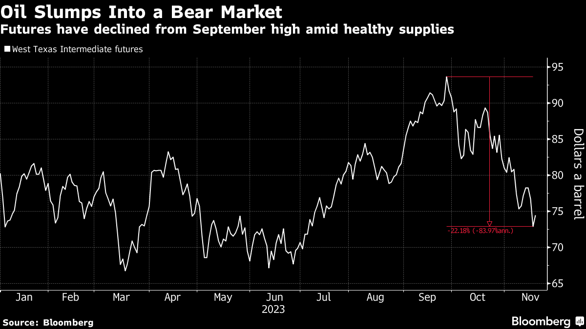 石油即将迎来第四周下跌;供应对欧佩克施压 - 彭博社