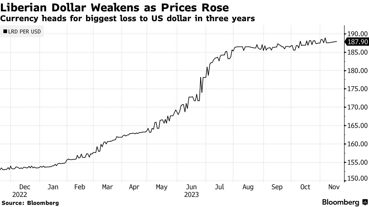 通货膨胀在6月份加速至12.4%,是两年多来最快的速度,然后在9月份降至10%。利比里亚元是彭博社追踪的八大非洲货币中表现最差的货币之一,今年对美元贬值了近18%。