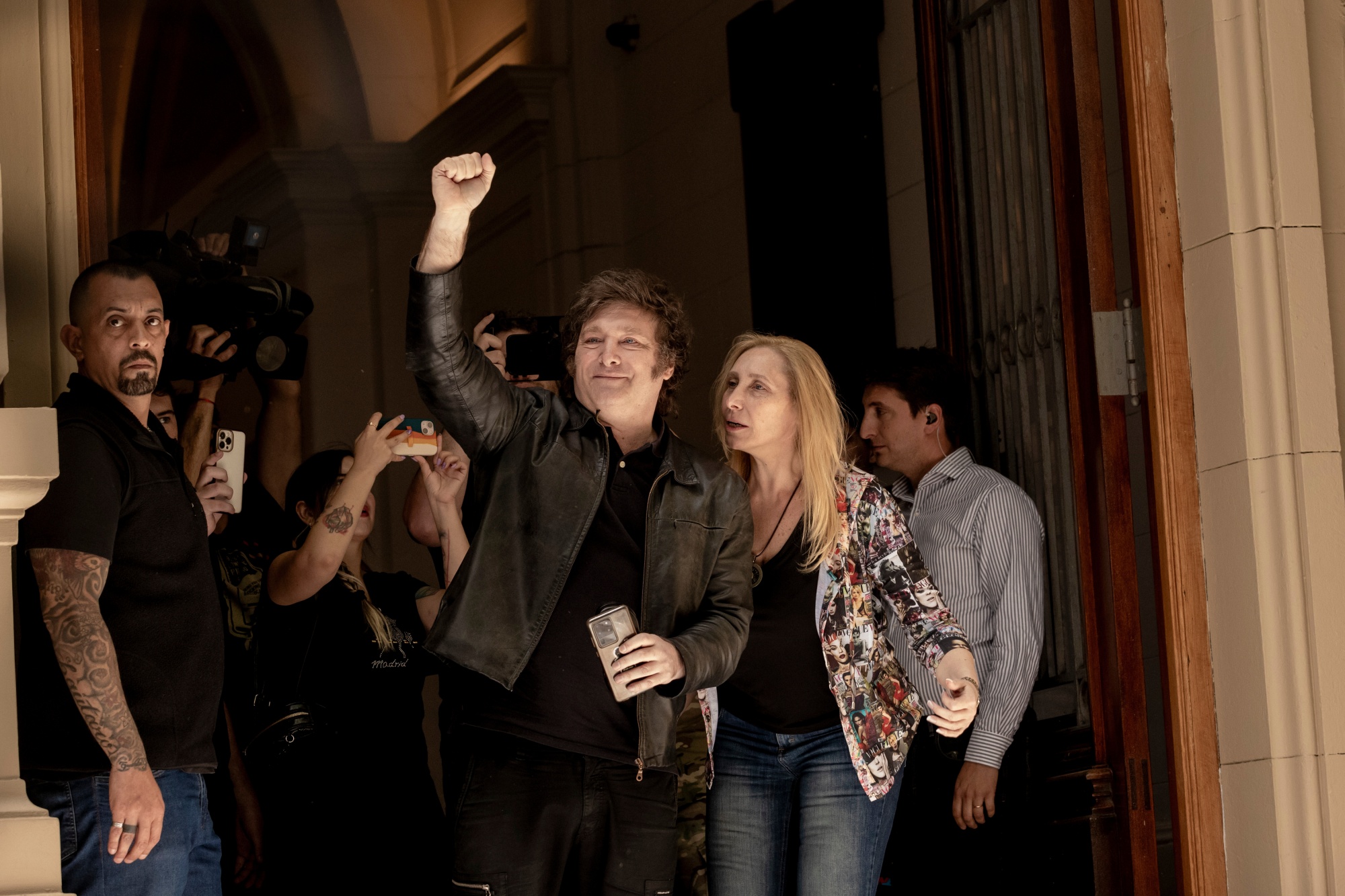 Javier Milei在周日在布宜诺斯艾利斯进行的总统竞选决选中投票后。摄影师:Anita Pouchard Serra/Bloomberg初步迹象表明,自由派候选人Javier Milei在阿根廷总统选举中表现强劲,自由派候选人似乎受益于科尔多瓦等关键摇摆地区的大规模投票。