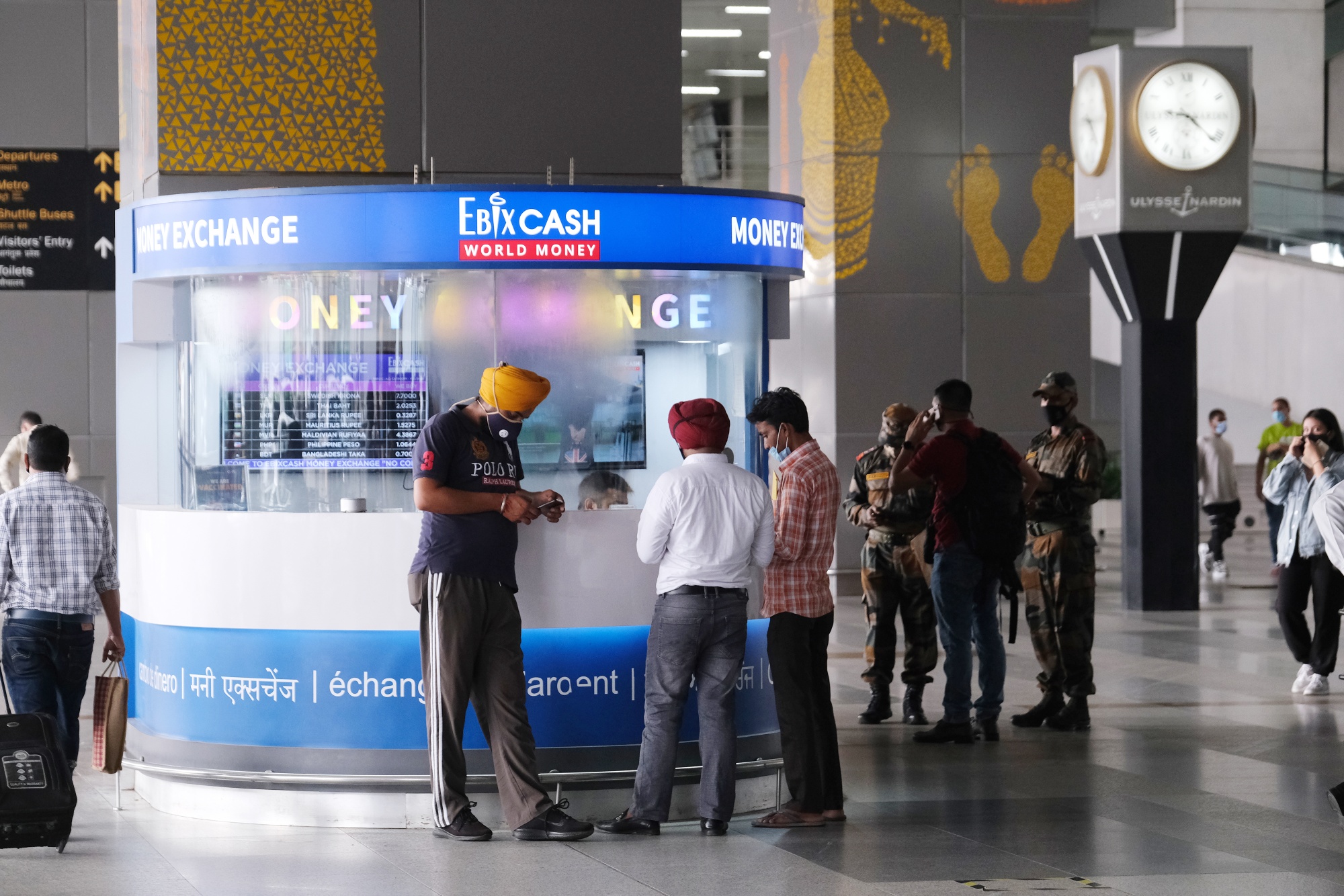 在新德里的英迪拉·甘地国际机场的EbixCash兑换柜台。