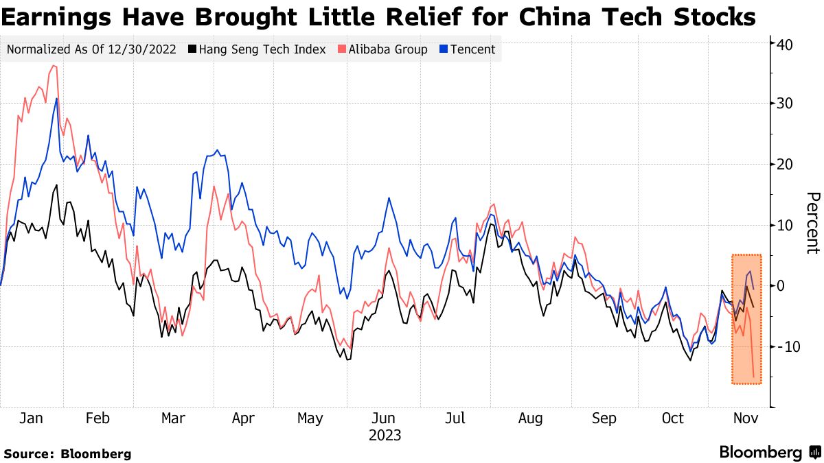 尽管一些其他公司已经超过了共识盈利预期,但令人不安的迹象仍然存在。腾讯股票自周三超出预期的盈利以来一直表现平淡,分析师指出广告收入不及预期,游戏销售也未达到预期。 京东和网易在似乎良好的业绩后也有小幅增长。周一,包括阿里巴巴在内的大部分中国科技股在香港交易中上涨。