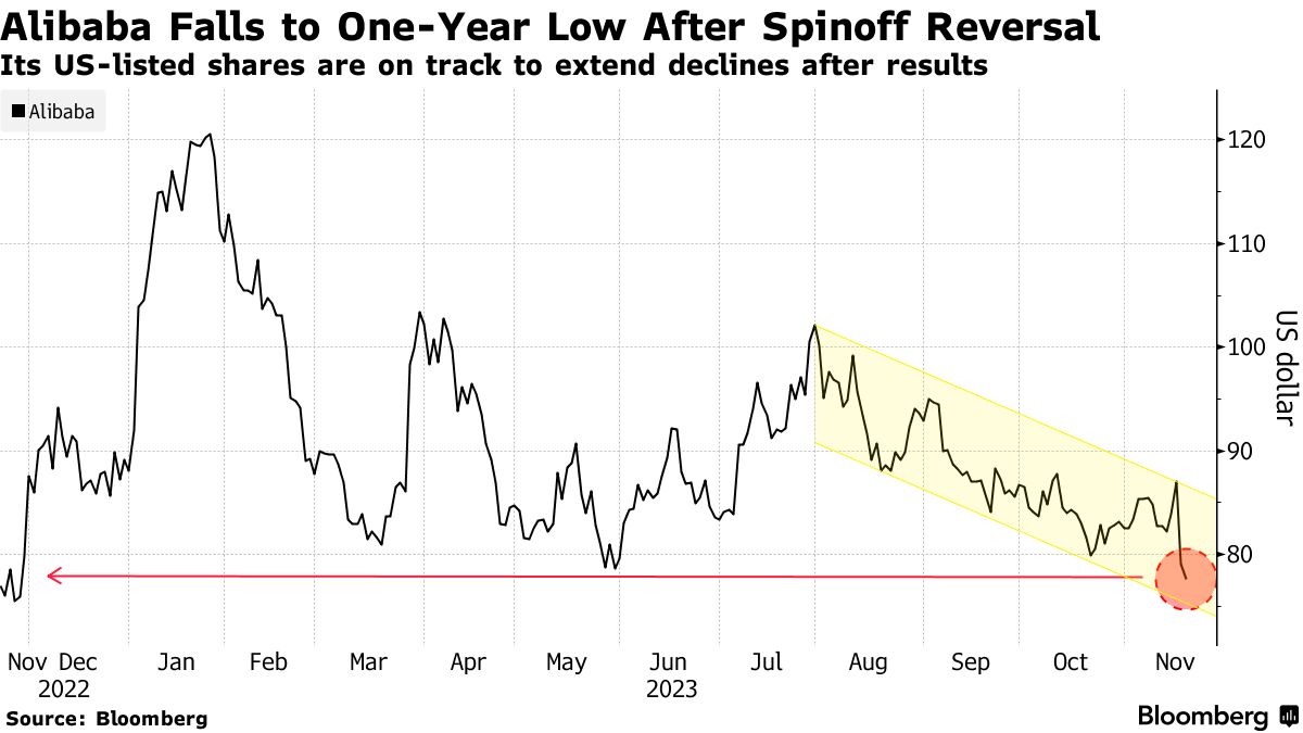 阿里巴巴在线销售商品给中国客户的核心业务在国家经济复苏乏力的情况下录得低于预期的销售额。除了取消云业务分拆,该公司还表示暂停了其热门杂货业务盒马鲜生的上市计划。