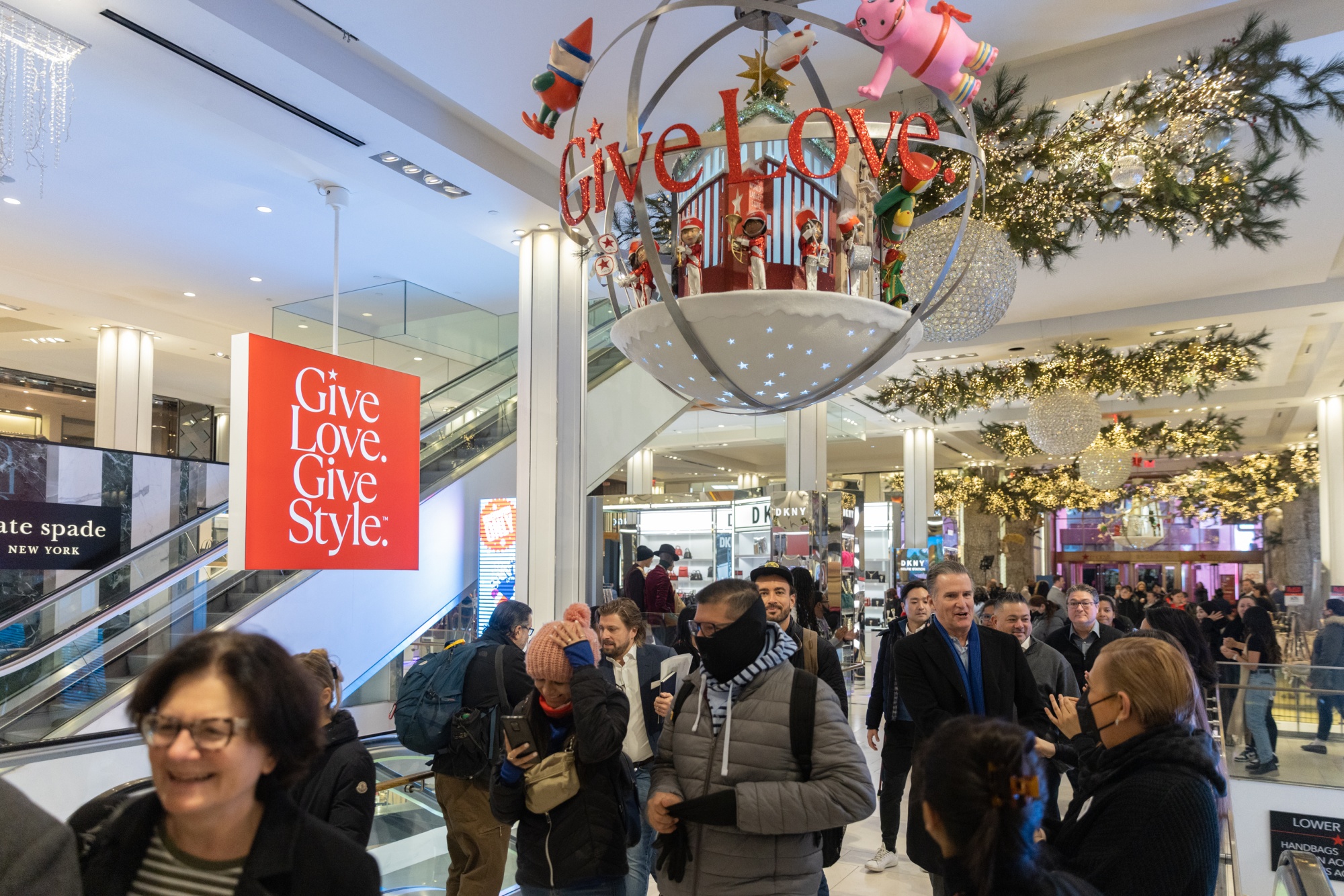 2022年在纽约梅西百货旗舰店的黑色星期五特卖。摄影师:Jeenah Moon/Bloomberg消费者计划在黑色星期五和网络星期一购物活动期间平均花费567美元,比去年增加了13%,因为他们在面对物价上涨和利率飙升等经济压力的同时寻找最优惠的交易。