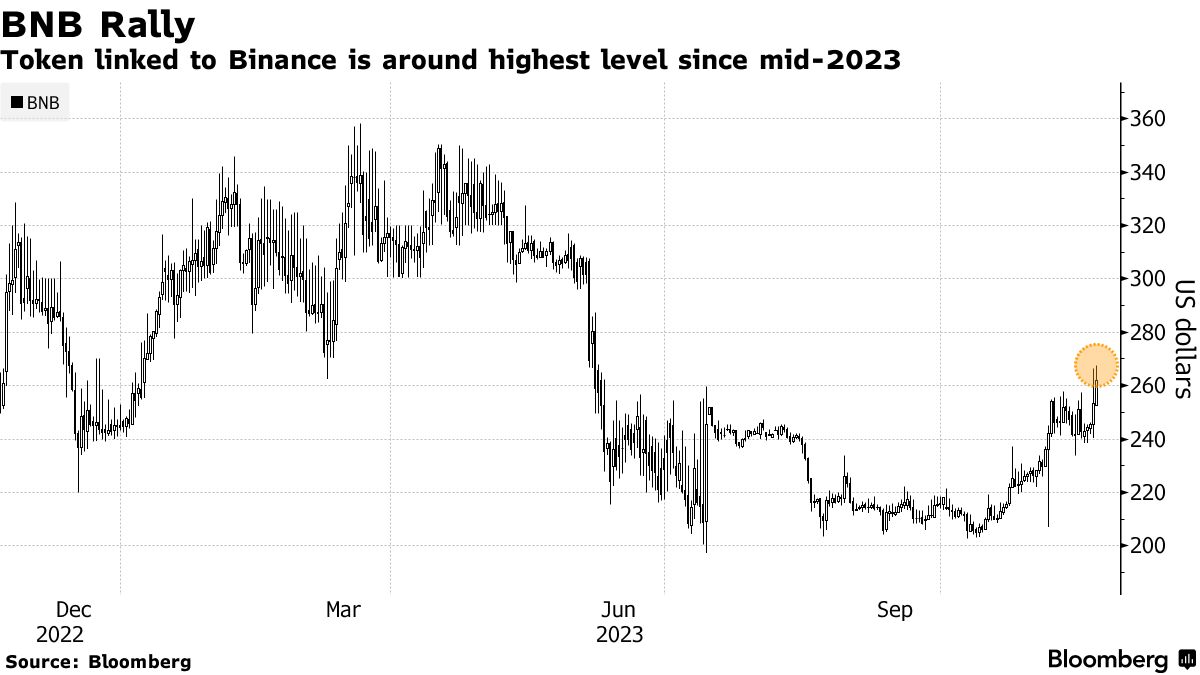 加密市场对美国司法部提出和解币安(BNB)调查的反应-彭博社