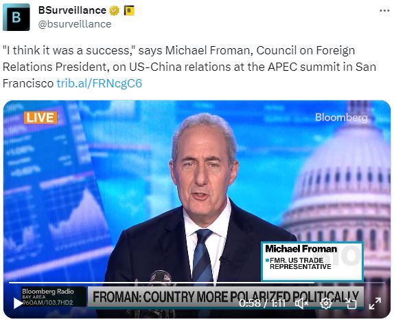 今天在彭博电视台的权力平衡节目中,主持人安玛丽·霍登和乔·马修采访了退役将军、前国务院官员马克·基米特,谈论以色列的最新动态。早些时候在彭博电视台上,外交关系委员会主席迈克尔·弗罗曼表示,亚太国家希望美国参与该地区。