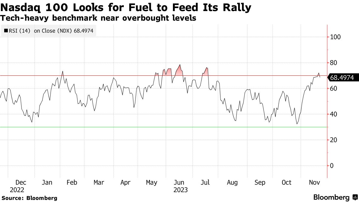 “股市再次被定价为完美,”Miller Tabak + Co.的首席市场策略师Matt Maley说。“由于目前股市的‘超买’程度比三周前的‘超卖’更高,投资者需要在11月底和12月之初保持非常灵活。”